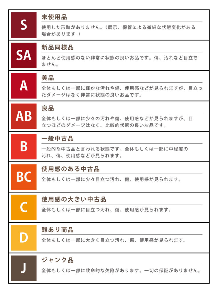 ※状態ランクは当店基準のものになります。お客様の基準や、他社基準との差異を理由したご返品はお受けできませんので予めご了承ください。